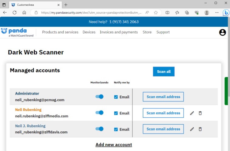 Dark Web Scanner là trình kiểm tra email có trong tất cả các gói Panda Dome. Nó cho phép bạn tìm hiểu xem tài khoản email của bạn có bị hack và bị lộ trên dark web hay không.